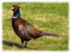 Der Fasan ist ein Hühnervogel mit einem farbenprächtigen Gefieder und langen Schwanzfedern, der mit dem Pfau verwandt ist und ursprünglich aus Asien stammt. Mittlerweile ist der Fasan durch menschliche Hilfe auch in Europa und Nordamerika anzutreffen. Während der Fasanenhahn ein buntes Federkleid trägt, sehen Fasanenhennen eher unauffällig aus und haben eine bräunliche Tarnfärnung. Fasane – ob männlich oder weiblich – werden zwar leider auch zu Jagdzwecken gehalten, sind mittlerweile wie Pfauen aber auch beliebte Ziervögel. Und als dieser lebt nicht nur der Pfau, sondern auch der Fasan mittlerweile in vielen Tierparks, Gärten und Zoos, in seiner Heimat bevorzugt er jedoch eine halboffene Landschaft mit genügend Unterschlupfmöglichkeiten – wie z.B. hohes Gras, Gebüsch oder kleine Wälder. Er ist jedoch ebenso in Feuchtgebieten mit Schilfbestand anzutreffen, sofern er dort Sträucher zum Verstecken vorfindet.