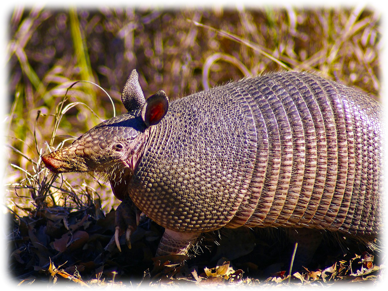 Das Gürteltier ist ein hauptsächlich nachtaktives Säugetier, welches auf dem amerikanischen Doppelkontinent beheimatet ist und daher ausschließlich in Nord- und Südamerika (sehr häufig z.B. in Argentinien und Brasilien) vorkommt. Es bevorzugt trockenes und warmes Klima, weshalb es zum Leben nicht nur Steppen und Savannen, sondern auch Halbwüsten benötigt. Ein paar Arten und Exemplare bewohnen den Regenwald, wenige Arten leben sogar in den Hochlagen der Anden. Als Nahrung bevorzugen Gürteltiere zwar Pflanzen und Insekten, verschmähen aber auch kleinere Wirbeltiere und Aas nicht. Gürteltiere sind eine sehr alte und die einzige heute noch lebende Ordnung der Nebengelenktiere, die mit dem Faultier und dem Ameisenbär verwandt sind. Ursprünglich waren sie einmal kleine pflanzenfressende „Dinosaurier“ mit eine Gewicht von bis zu 2 Tonnen. Das auffälligste Erkennungsmerkmal des Gürteltieres ist zweifellos ihr Körperpanzer aus Knochen und Horn, der bis auf den Schwanz den gesamten Köper (d.h. Kopf, Rücken und Beine) bedeckt. Ebenfalls typisch für das Gürteltier ist das Zusammenrollen bei Gefahr, was wir sonst nur vom Igel kennen. Beim Anlegen ihres Erdbaus oder während der Nahrungssuche wühlen Gürteltiere nur all zu gerne in der Erde herum und graben diese auch gerne mal abschnittsweise komplett um. Bei allem, was Sie tun, verlassen sich Gürteltiere stets auf ihre Nase und ihren außergewöhnlich guten Geruchssinn, mit dem sie Beute aufspüren und Gefahren rechtzeitig wittern können. Auf Grund dieser Eigenschaften und Vorlieben könnte man fast meinen, dass das Gürteltier eine Mischung aus Igel, Schildkröte und Wildschwein ist.
